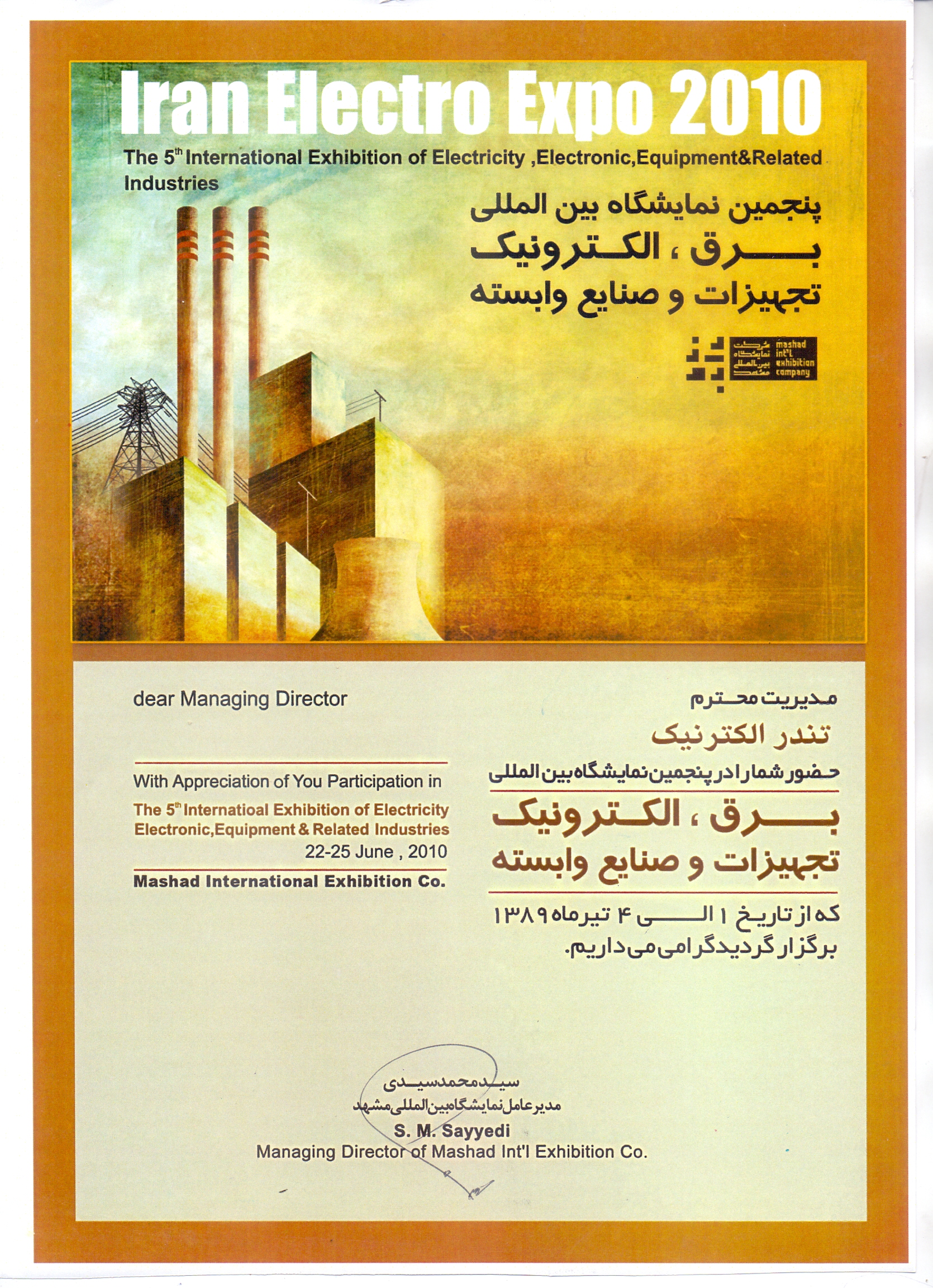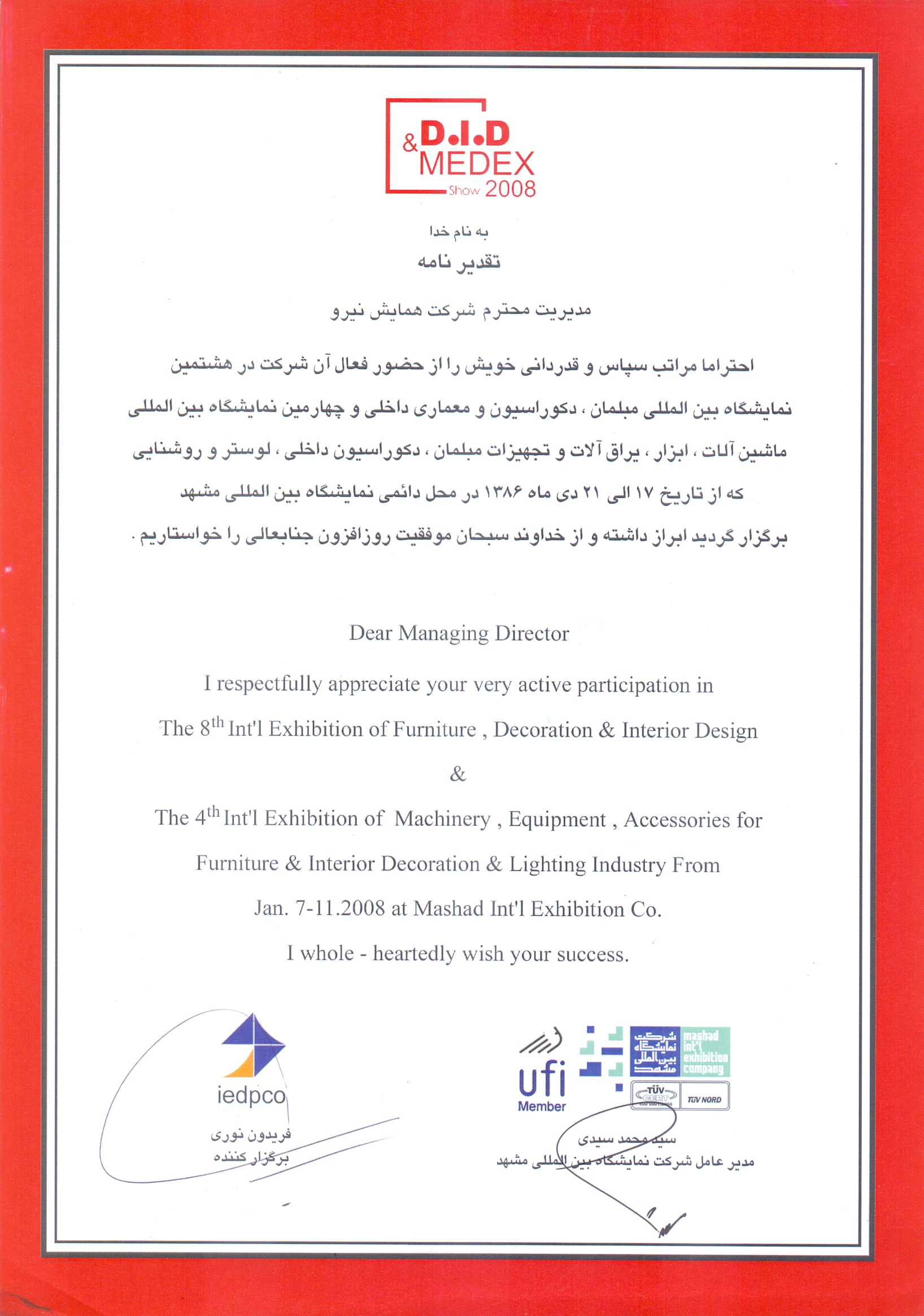 تقدیرنامه غرفه برتر در نمایشگاه بین المللی