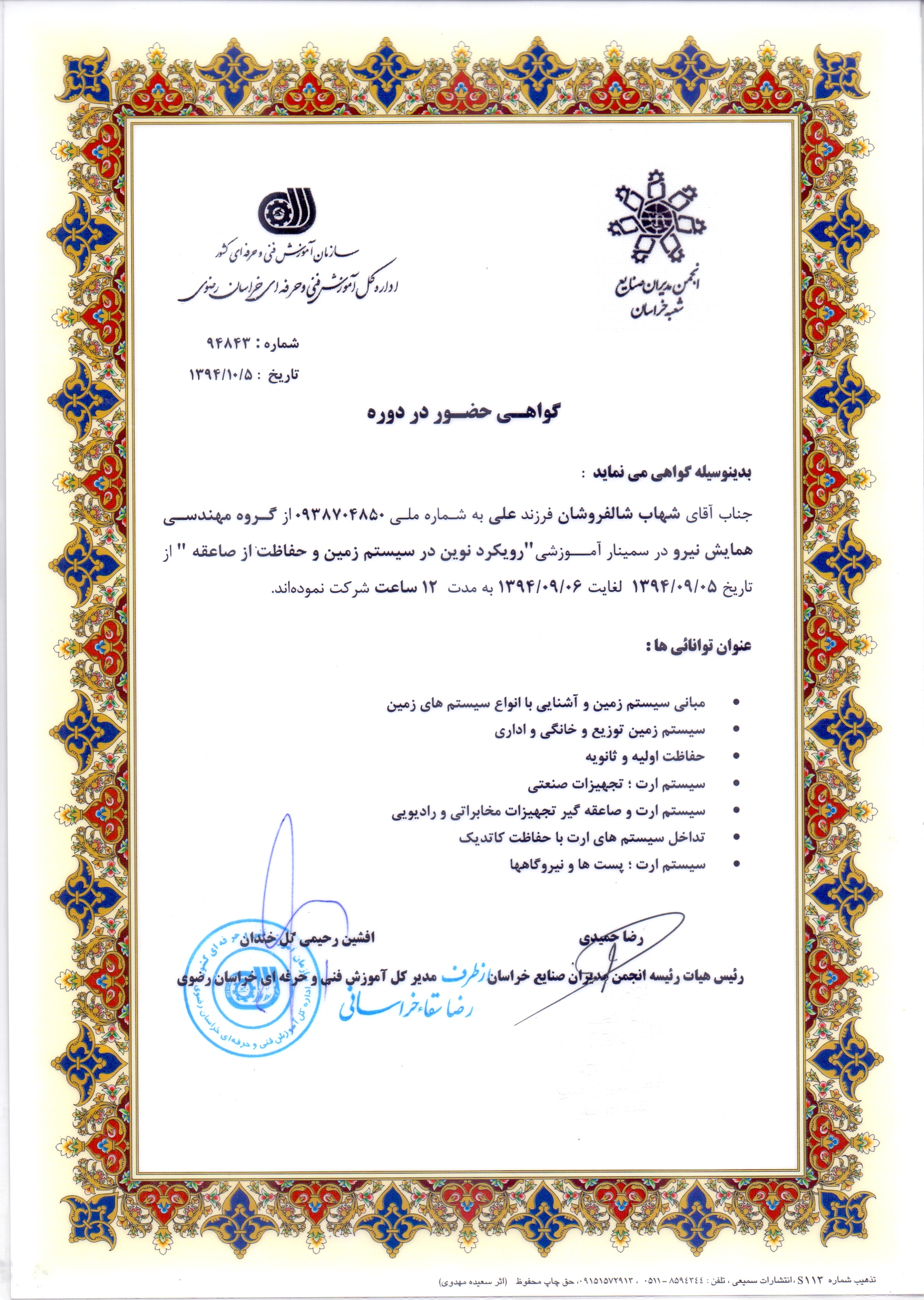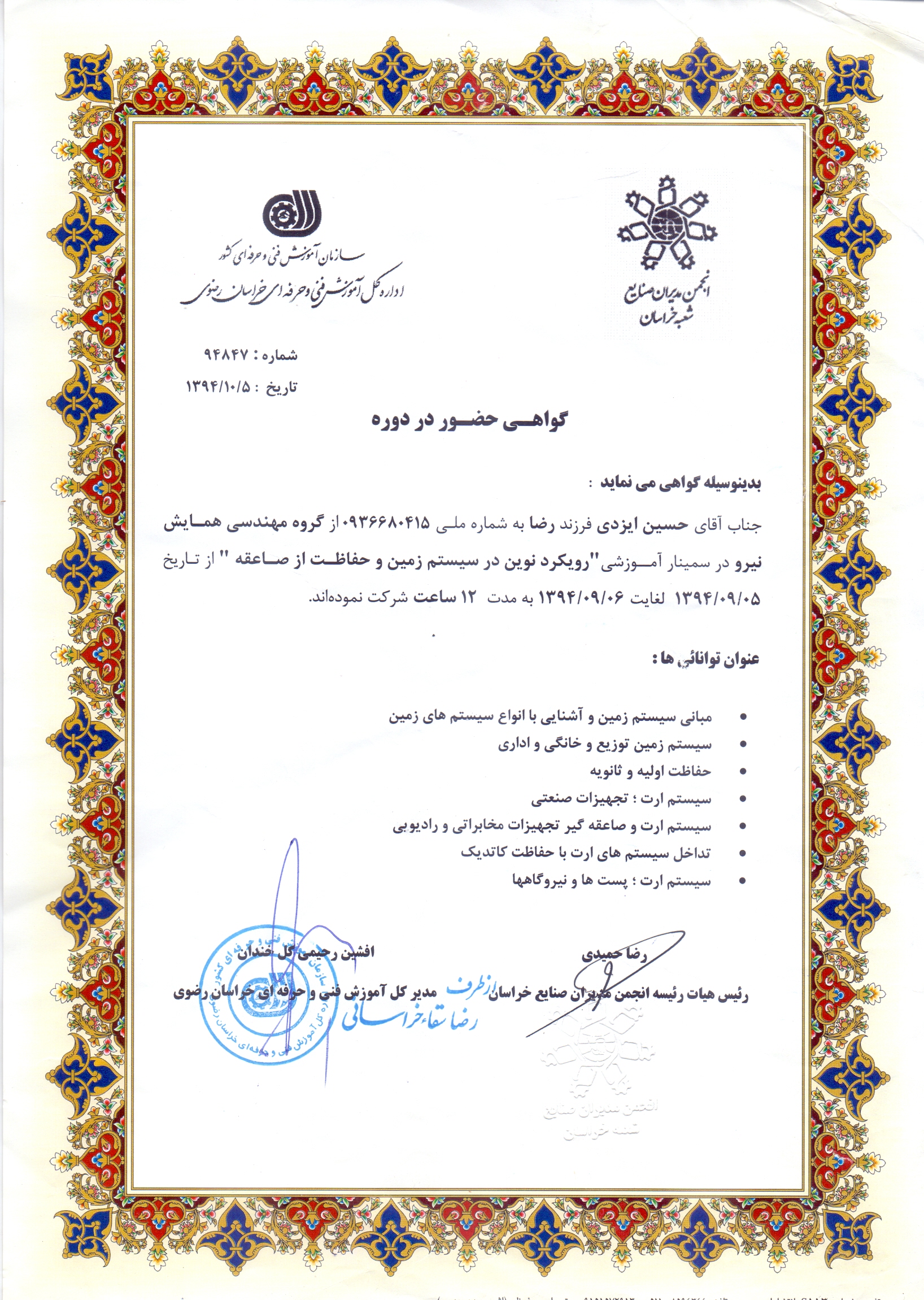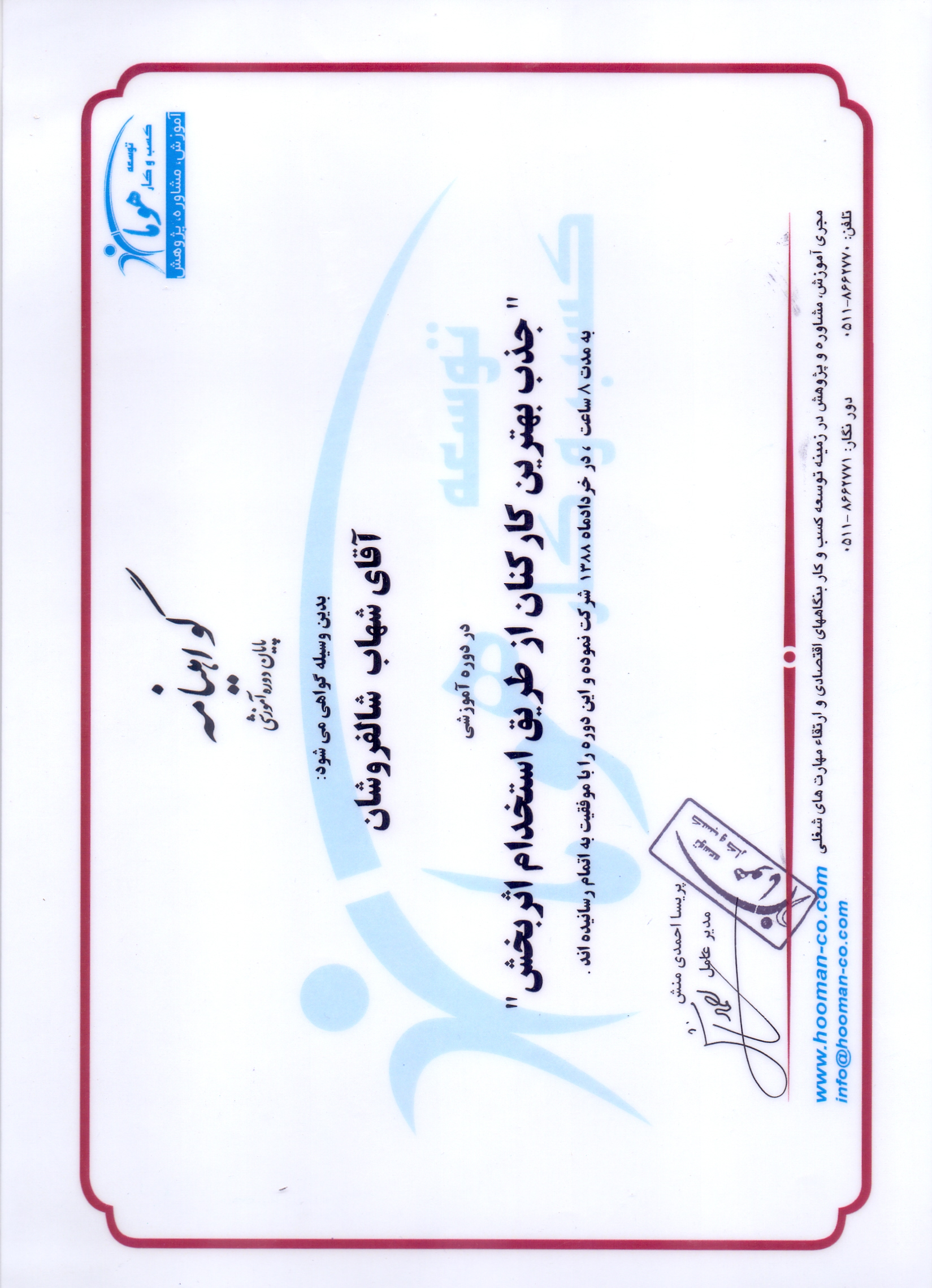 • دوره های آموزشی گذرانده شده تسط مدیر مجموعه