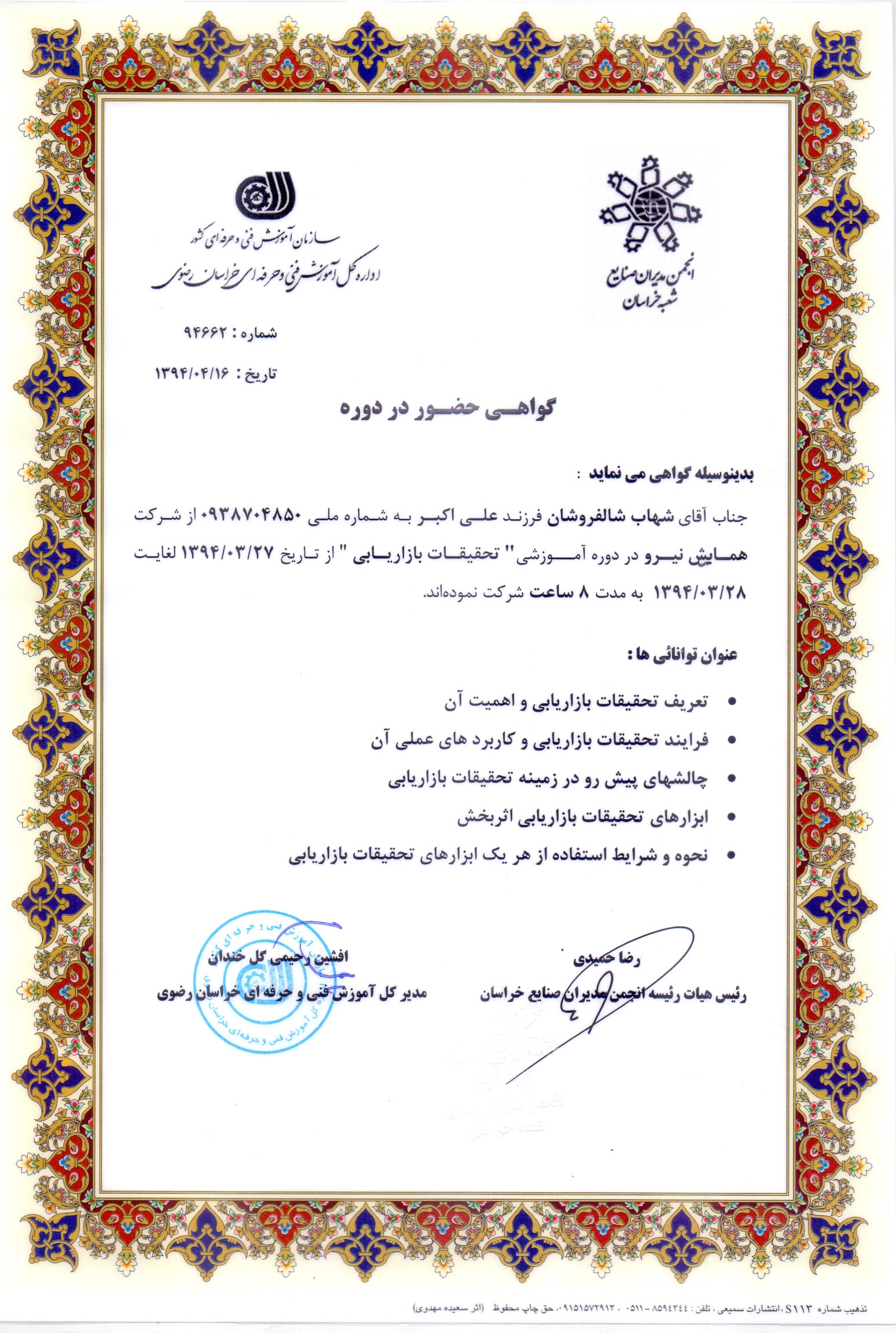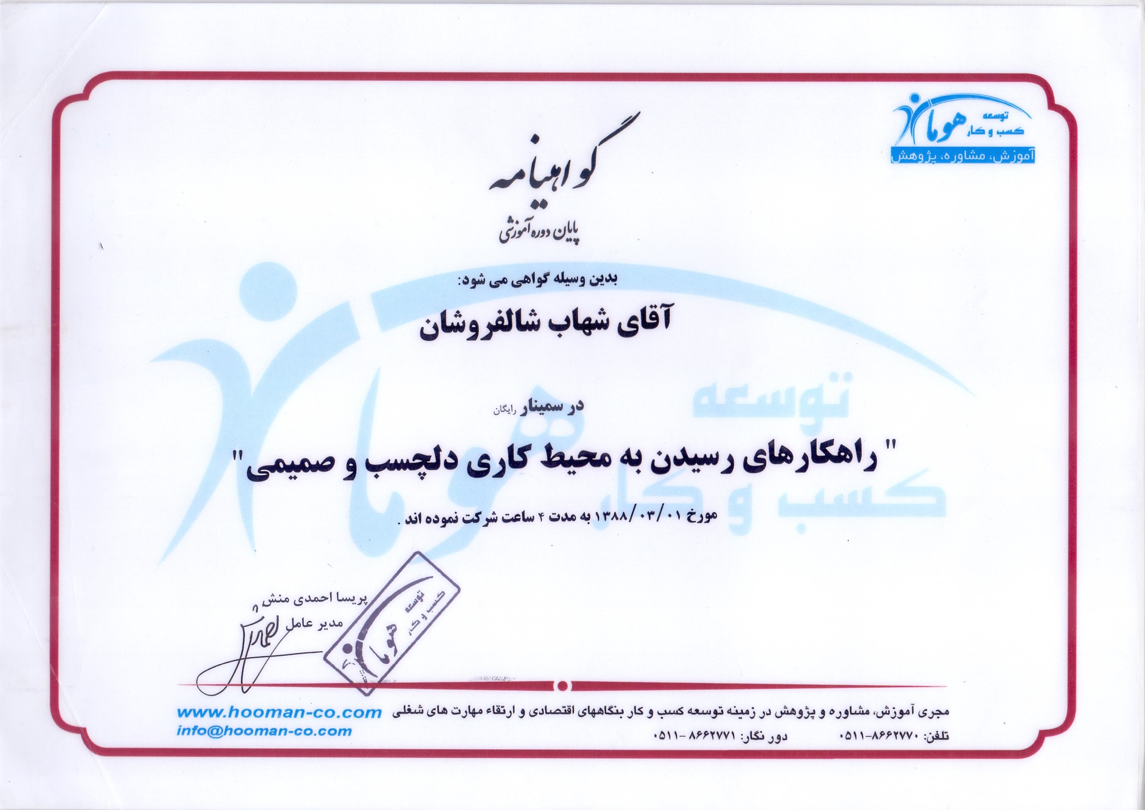 دوره های آموزشی گذرانده شده تسط مدیر مجموعه